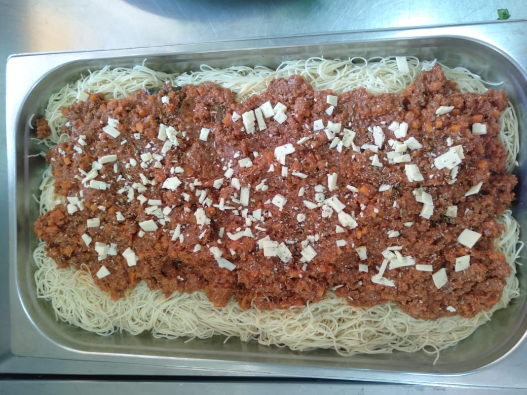 -For finishing spaghetti bolognese,pit 150 gr pasta on the pasta plate
